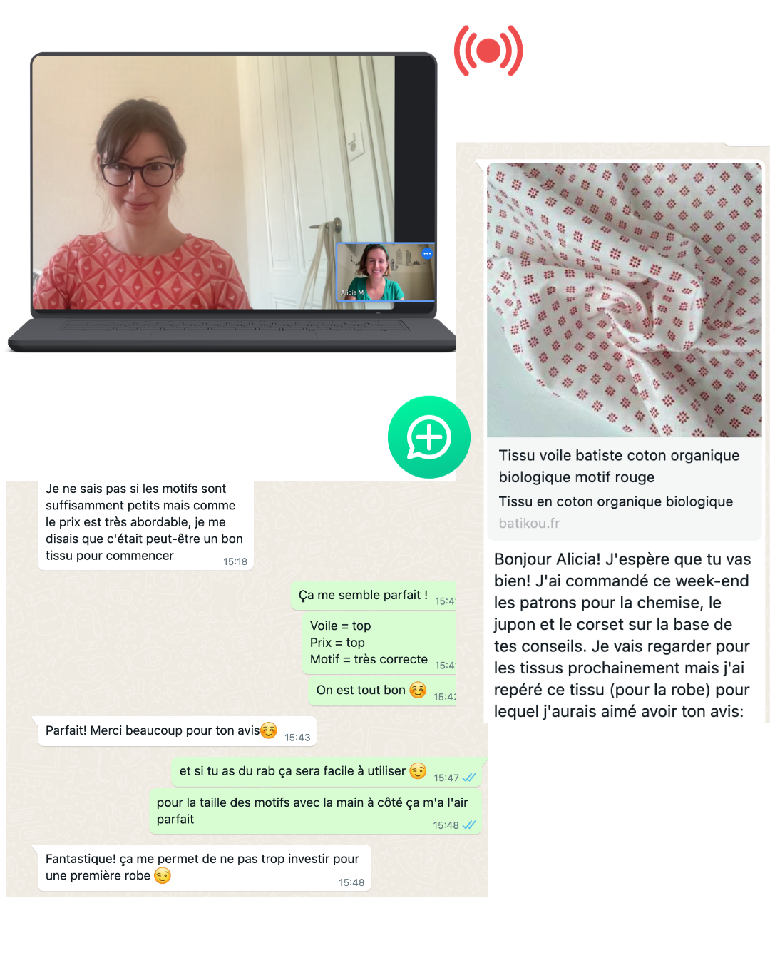 Réserve une session vidéo de 45 minutes que je te consacre en exclusivité pour planifier ton projet et concrétiser tes rêves de garde robe cousue main.